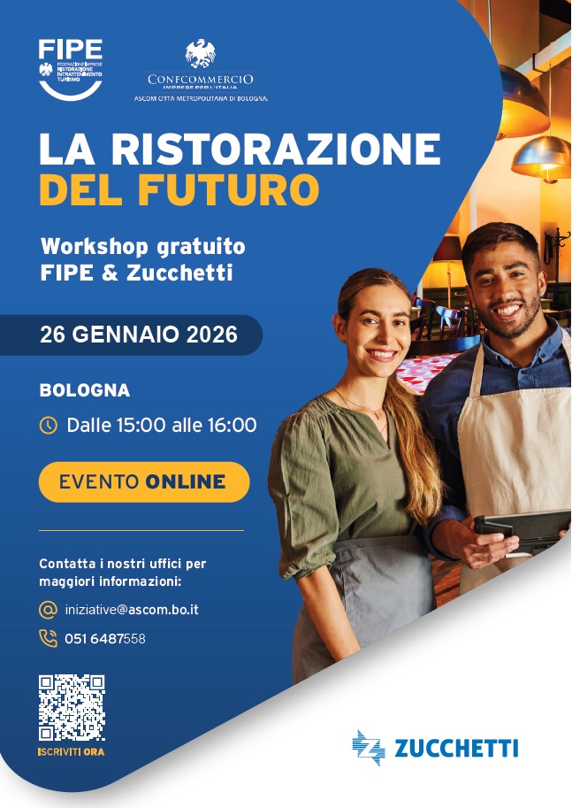 Confcommercio Ascom Bologna, Fipe e Zucchetti, lunedì 26 gennaio 2026 alle 15, incontrano i pubblici esercizi per guidarli nel futuro della ristorazione